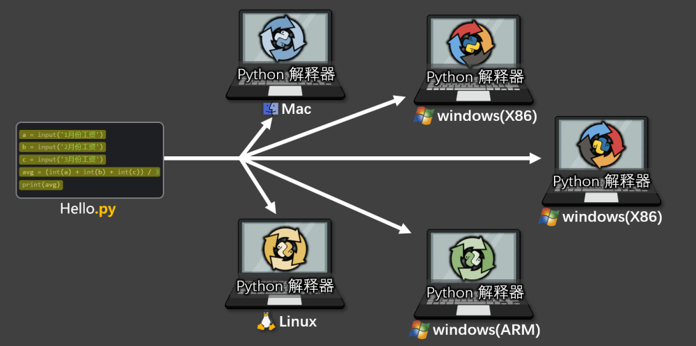 将程序一句一句的翻译为:计算机可以执行的指令,整个过程通常不生成可执行文件,常见的解释型语言有:Python、Php、JavaScript 等。