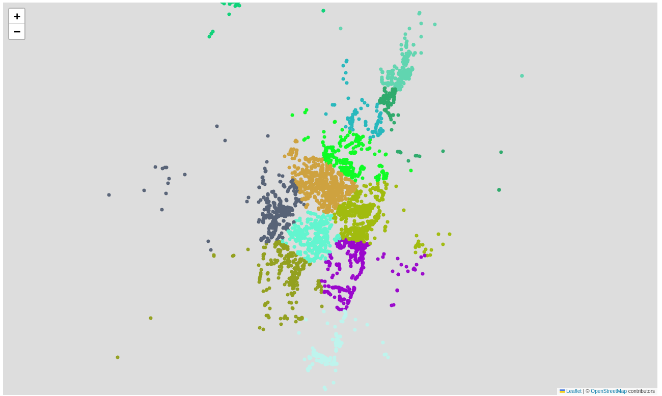 m.save('clusters.html')最终生成的可视化地图如下图所示: