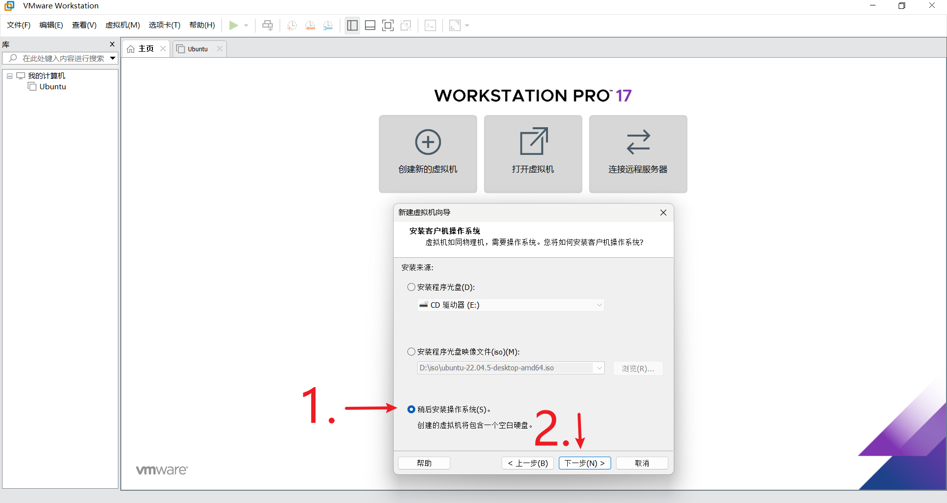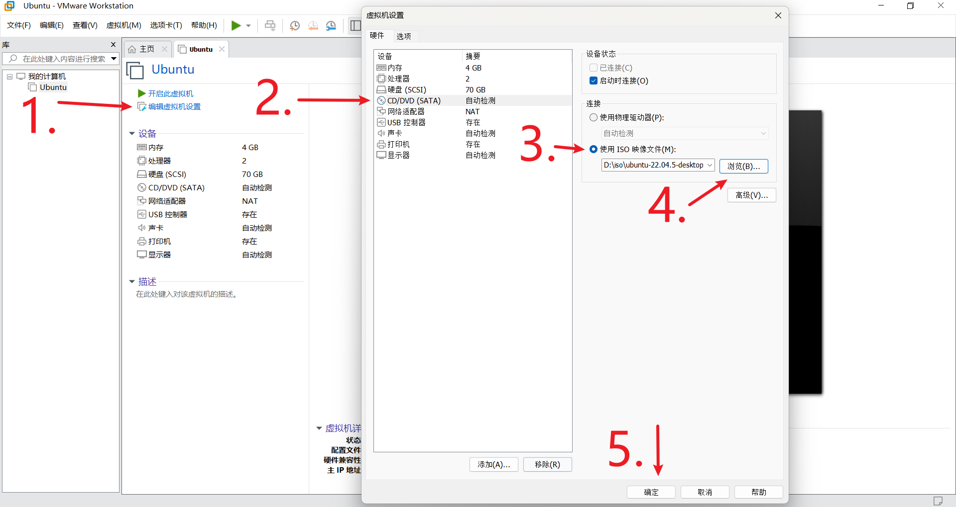 点击“浏览”按钮,选择您下载的 Ubuntu ISO 镜像文件。