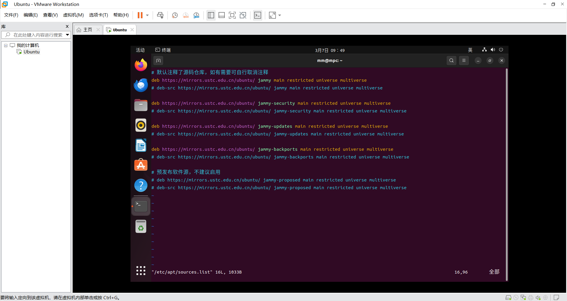 deb https://mirrors.ustc.edu.cn/ubuntu/ jammy-updates main restricted universe multiverse