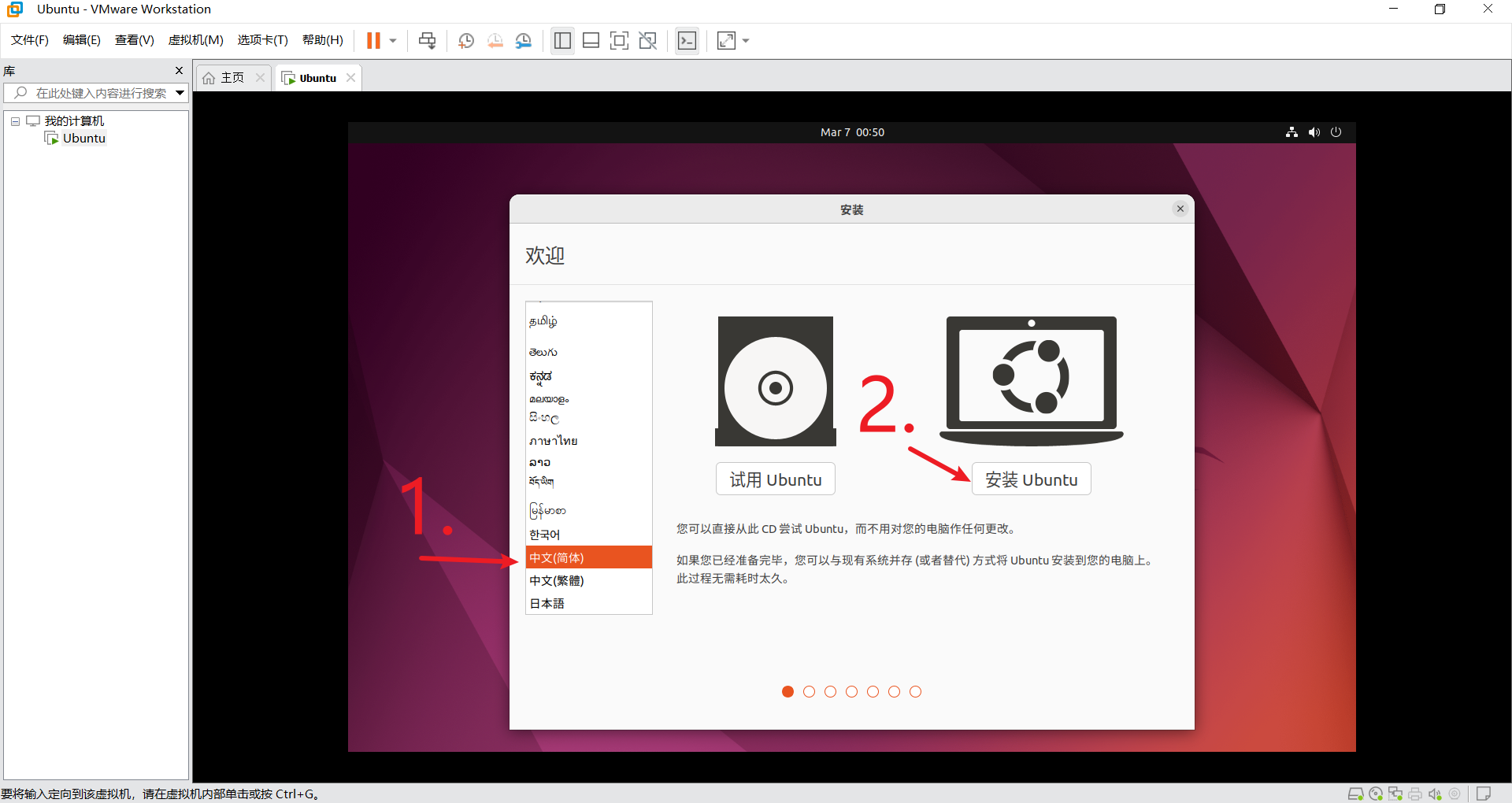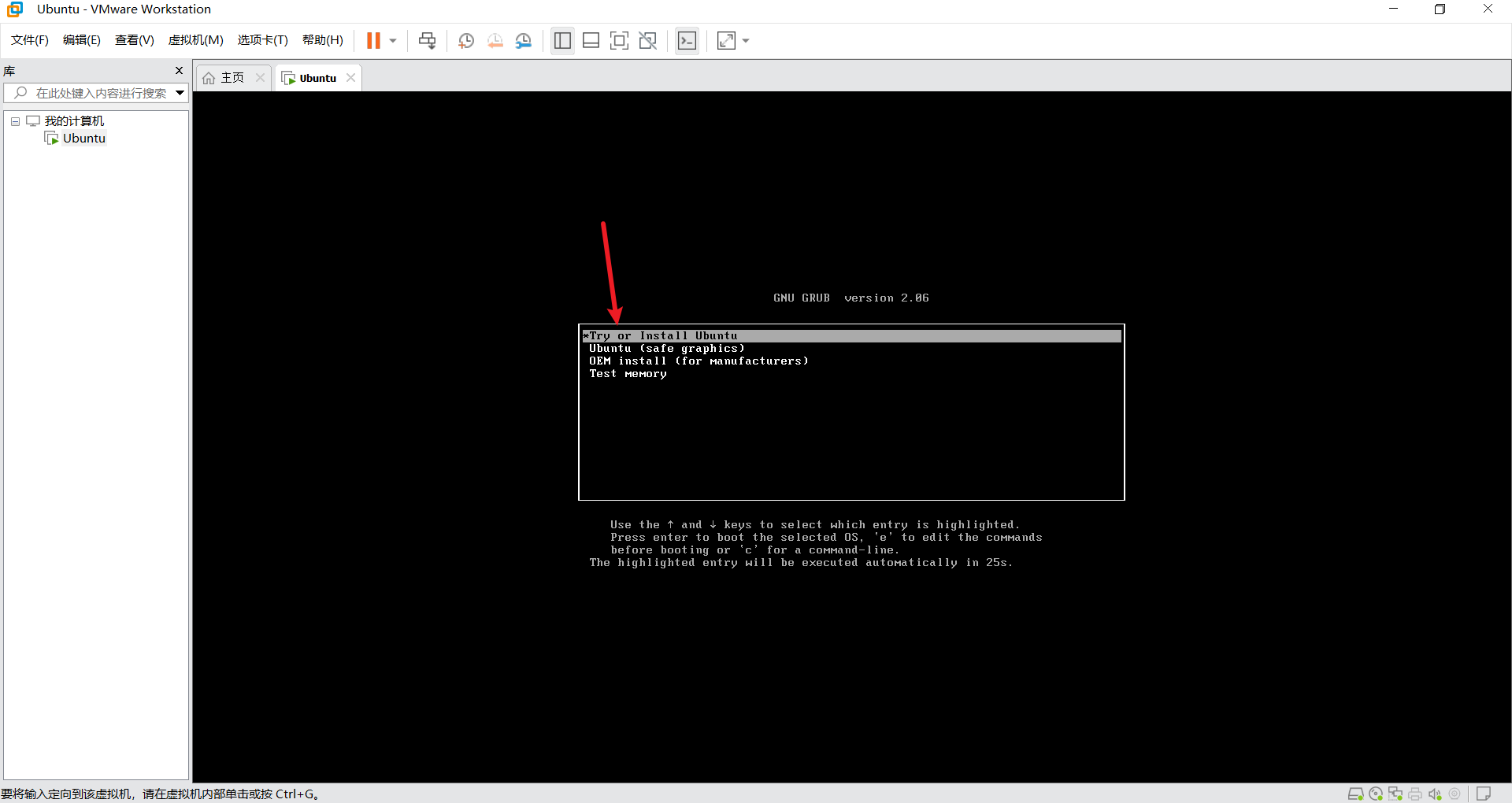 在启动安装介质(U 盘或 ISO)后,进入 GRUB 界面,选择 “Try or Install Ubuntu” 进行安装。