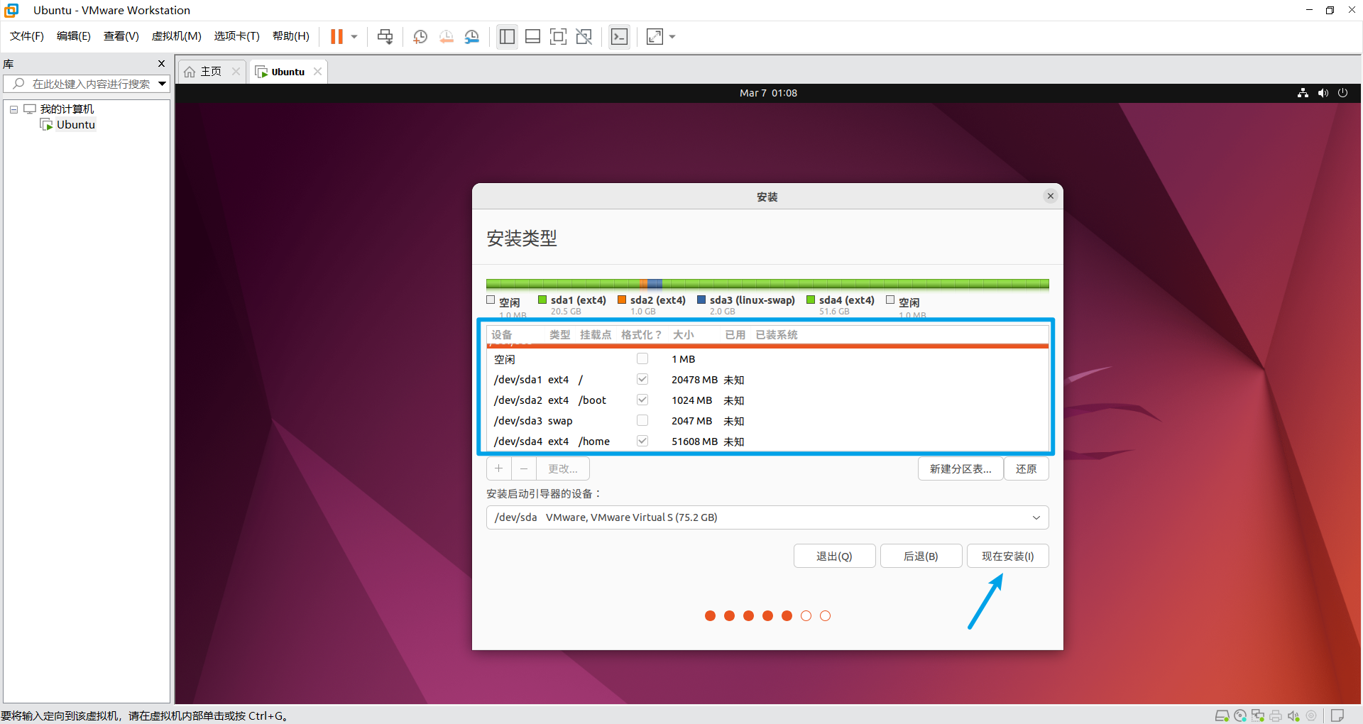 swap区:设为逻辑分区;作用跟电脑内存类似,大小也可以和电脑内存一样大;一般2G就可以。/boot区:设为主分区 ,Ext4格式;引导系统的,分配200M-500M就可以,条件好些分配1G。/区(主分区):设为主分区,Ext4格式;存放系统,类似windows系统的C盘,大小根据电脑性能分配,一般建议存储空间的20%-35%;/home区:设为逻辑分区,Ext4格式;储存用户数据文档的,剩下的存储空间全部给它就可以。